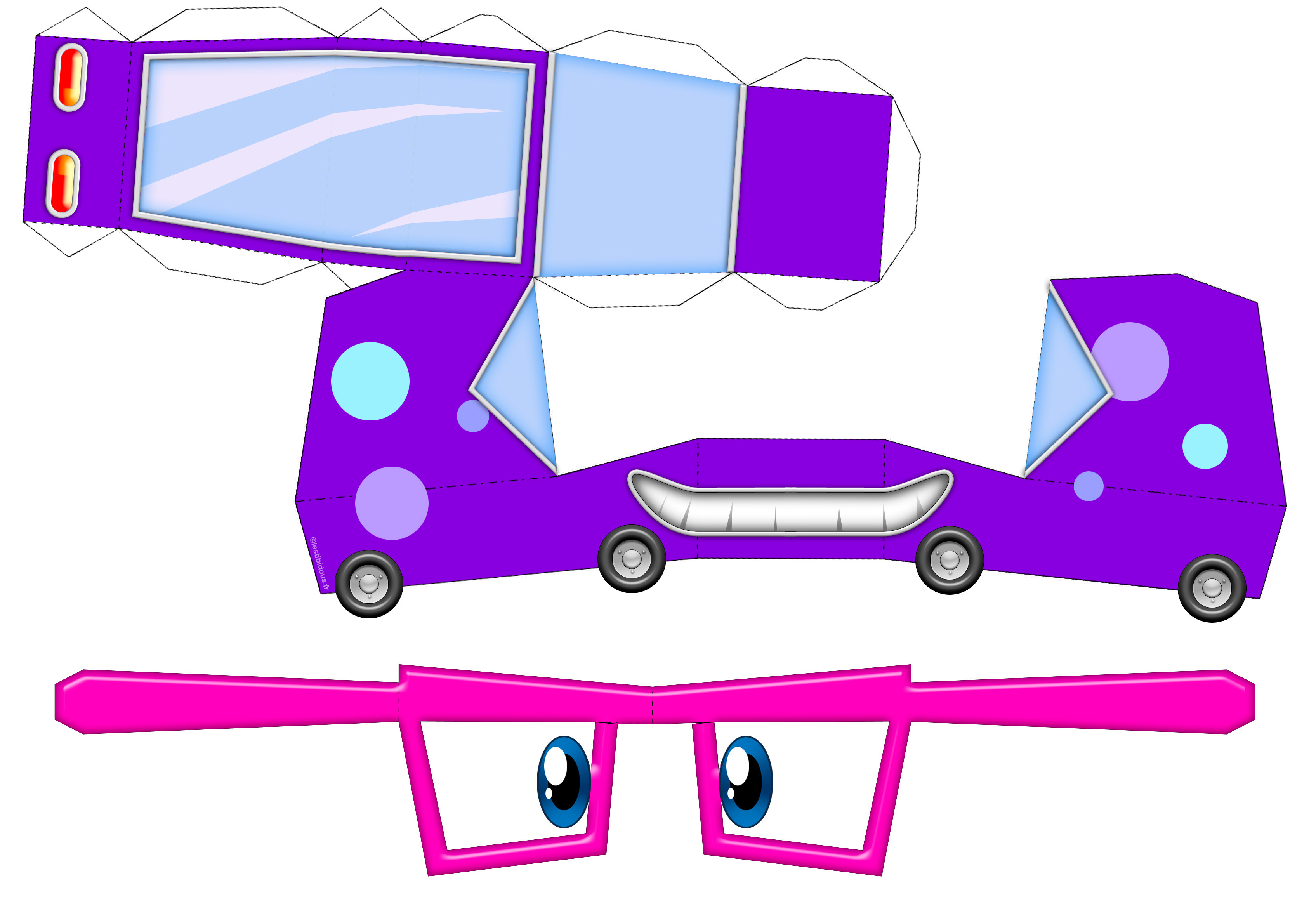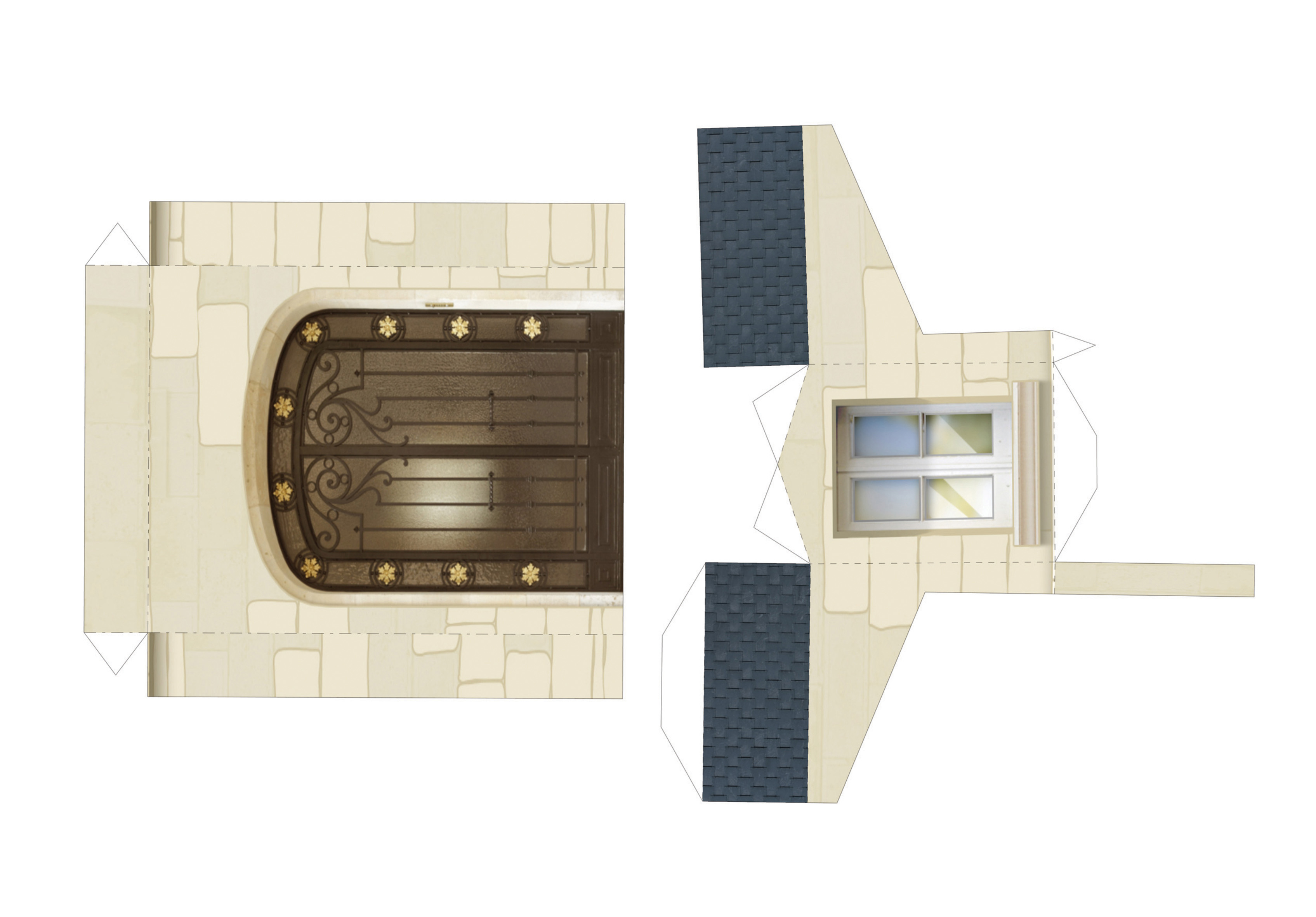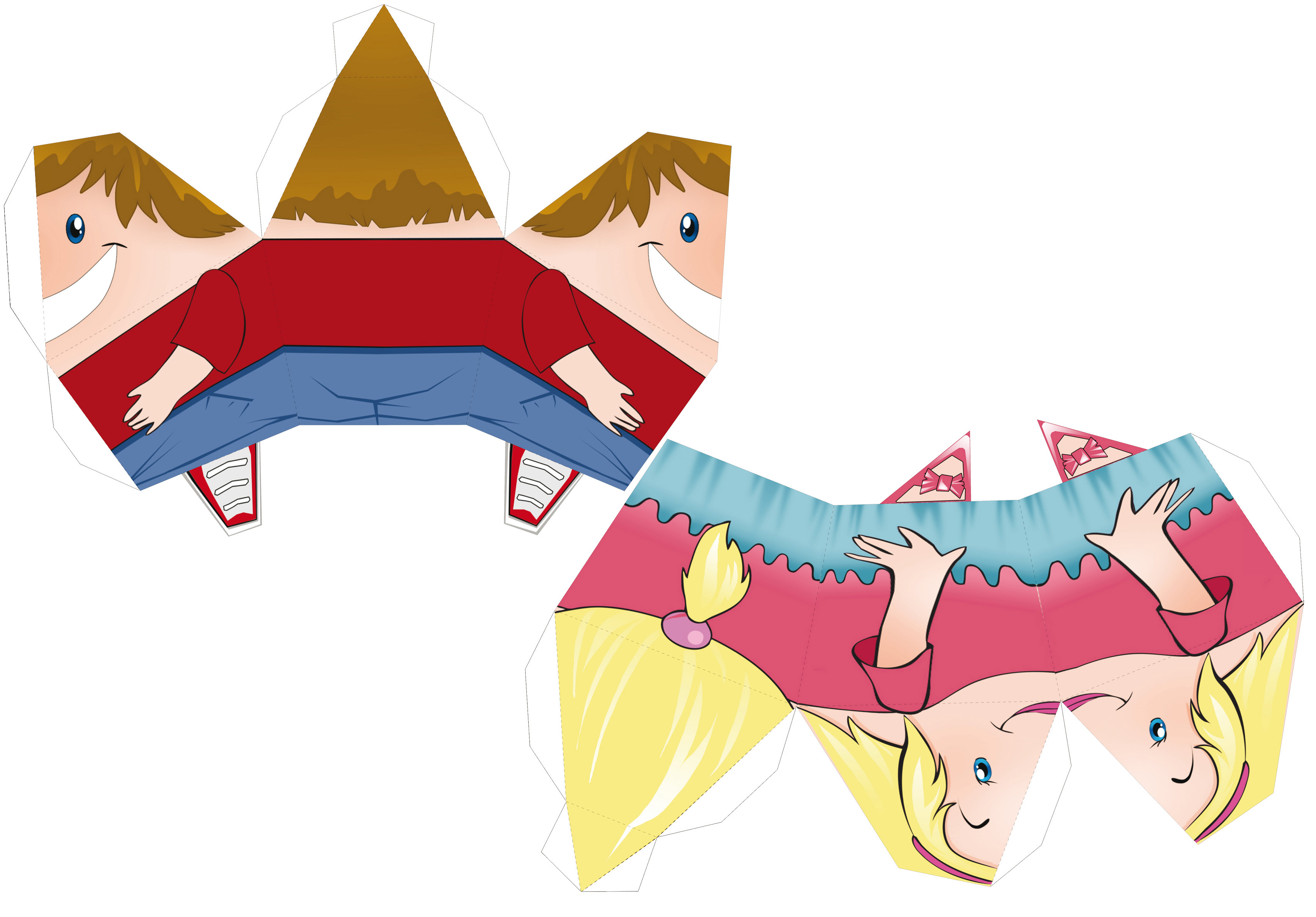 Imprimez ces maquettes sur une feuille légèrement cartonnée, découpez selon le contour, pliez sur les lignes pointillées puis collez les languettes au moment du montage!