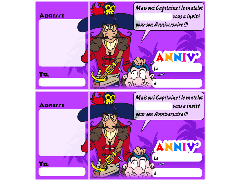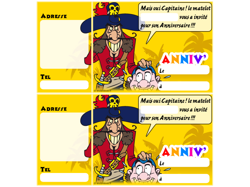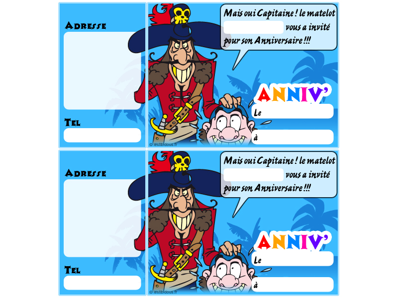 Vous avez un petit ou une petite pirate à la maison ? Alors préparez-lui un anniversaire sur le thème des pirates et retrouvez ci-après différents modèles de cartes d'invitation mais aussi des masques, des jeux et des coloriages sur le thème de la piraterie, de la chasse au trésor et des caraïbes. Prêt pour l'aventure ?