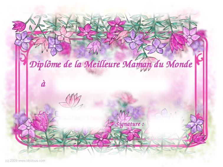 Diplôme de la meilleure Maman du monde ! A imprimer et à offrir !