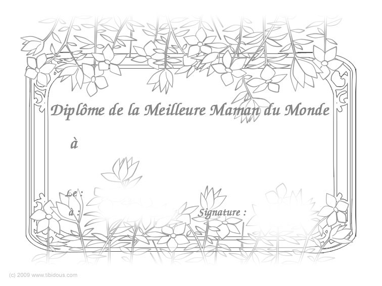 Diplôme de la meilleure Maman du monde ! A imprimer, à colorier et à offrir !