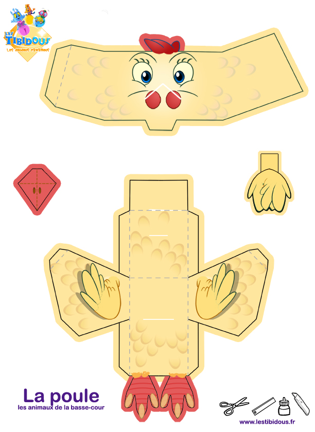 Activité de bricolage sur le thème de Pâques et du printemps : Paper toys, maquette à imprimer et à monter, panier à monter, poussin, poule, canard, Maquettes de décors à imprimer, Maquette de paniers à monter, Paniers d'oeufs, Paniers fleuris, Rond de serviette Poule, Rond de serviette Lapin.